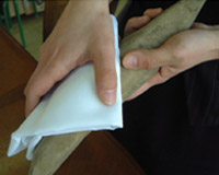 | 1、カビを取る 表面についているカビを取ります。(このカビは鰹カビといって鰹節の旨味を引き出しています。食べても害はありません。)乾いた布巾やキッチンタオルなどで拭き取ります。絶対に濡らした布巾などで拭かないでください。かつおぶしが湿ってしまうと品質の劣化や雑菌の付着、繁殖など、長期の保存が出来なくなります。 |