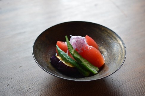 | 【夏野菜の冷製炊き合わせ】▼ | 【茸たっぷり豚バラの出汁焼き】▼ |