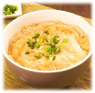 【だしを愉しむ 京風たまごにゅうめん】(たっぷり1人前)○材料 白だし…400t 砂糖…5g 本みりん…小さじ1(5t) 淡口醤油…大さじ2(30t) 片栗粉…小さじ1(5g) 卵…1個 そうめん…2把(100g) |